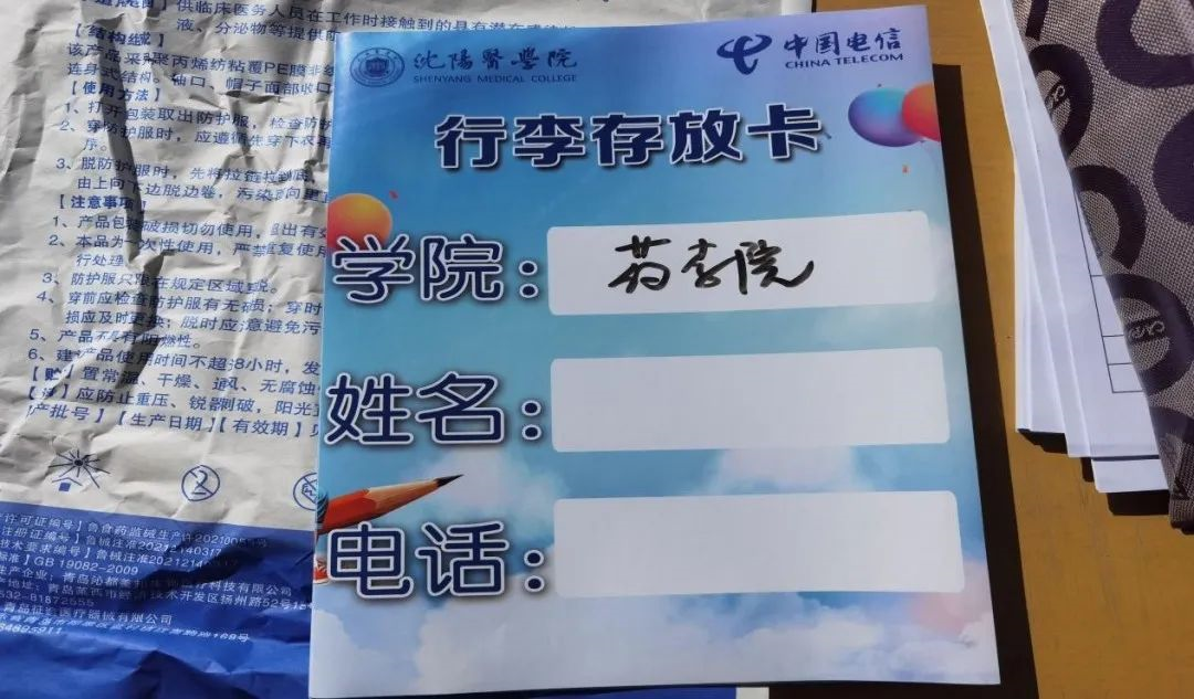 为了保障大家的行李都能完好无损地送达寝室,药学院的老师为大家写好行李存放卡,并粘贴到每一件行李上。这些小小的细节承载了老师对学生们无微不至的关心。