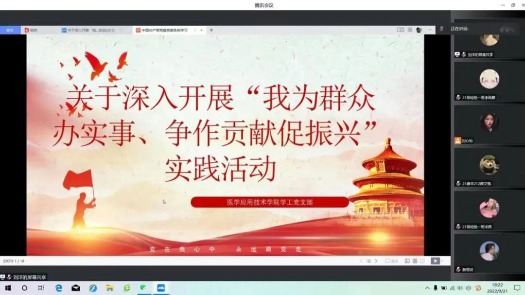 按照九月份主题党日活动要求,医学应用技术学院学工党支部于9月21日下午组织全体党员、积极分子,开展了“我为群众办实事、争作贡献促振兴”实践学习活动。