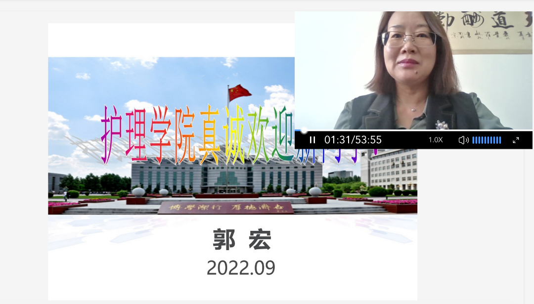 为了让大一新生更快地适应大学学习生活,全身心投入专业学习,引导新生扣好人生第一粒扣子,护理学院制定了以“爱国爱校教育”“专业知识教育”“心理健康教育”为主题的系列新生入学教育课程。入学教育的第一讲,由护理学院郭宏院长讲授,郭院长与2022级1301名新生同学云端齐聚于长江雨课堂,以“发展中的护理学院”为题,带领大家一步步走进护理学院。