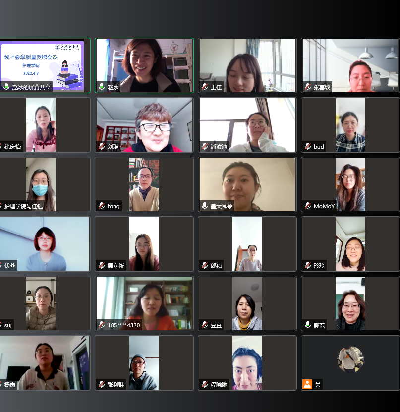 4月8日,护理学院举行了“线上教学质量反馈会议”。会议总结了学校线上教学质量检查存在问题;二级督导组成员对于线上教学听课情况及学生出勤率情况进行反馈;新入职教师对于居家办公期间参加的培训及全程听课情况进行汇报。