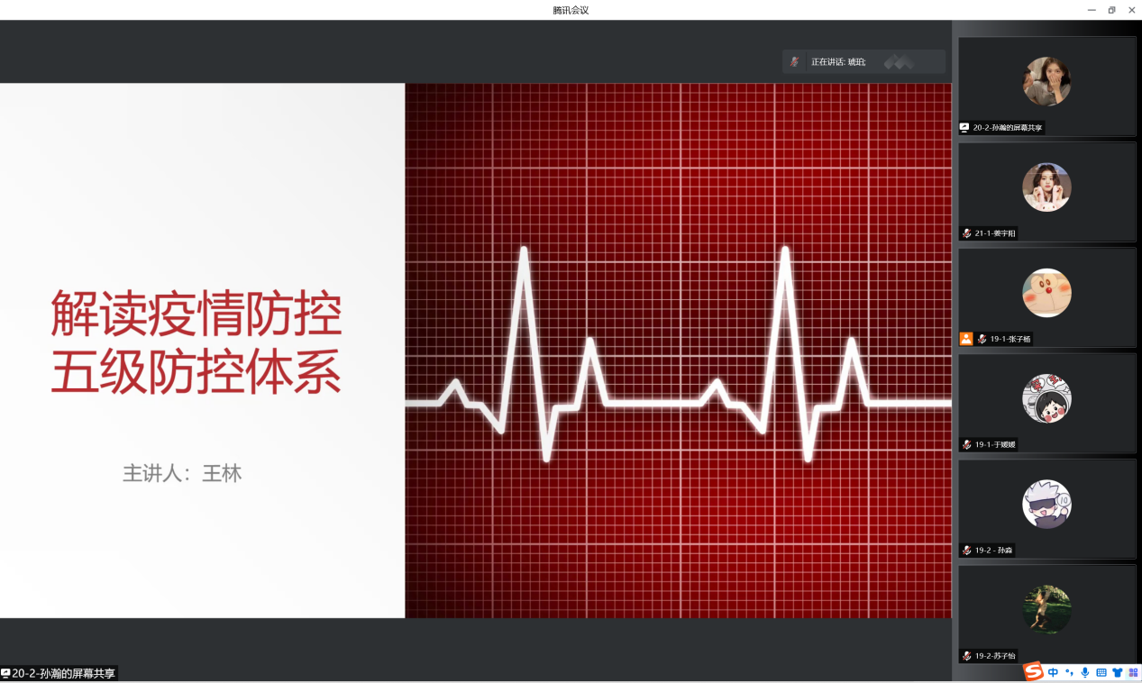 辅导员王林老师分别对《疫情防控校园封闭期间管理手册》的指导思想、工作原则、工作目标、五级管理体制职责划分、志愿服务等内容进行了详细地解读。同时强调,全体学生要严格遵守学校制定的相关规定,坚定信心,共克时艰。