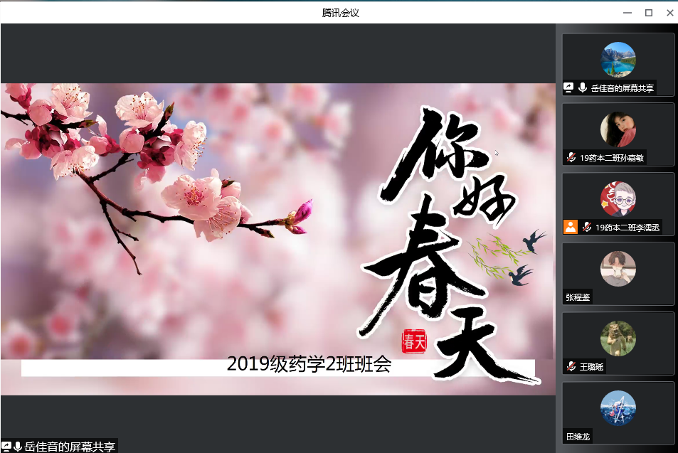为更好地帮助同学们做好职业生涯规划,引导同学们树立正确目标,积极生活学习,缓解疫情常态化防控期间学生的心理压力,4月2日至3日,药学院面向2019级同学分班级召开了一场主题为“疫情防控、生涯规划”的线上主题班会。会议由班导师岳佳音、高金薇老师主持。