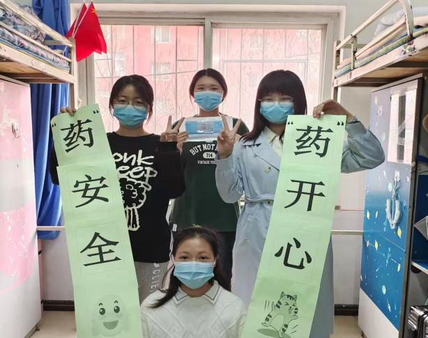 “口罩一戴,健康常在”,药学院团总支号召全院学生出入寝室一定都要佩戴好口罩,全体辅导员老师也用数据和实验结果的方法,多次向同学们强调了戴口罩对于疫情防控的重要作用,并亲自购买慰问品,慰问由重点关注地区返校的隔离学生。
