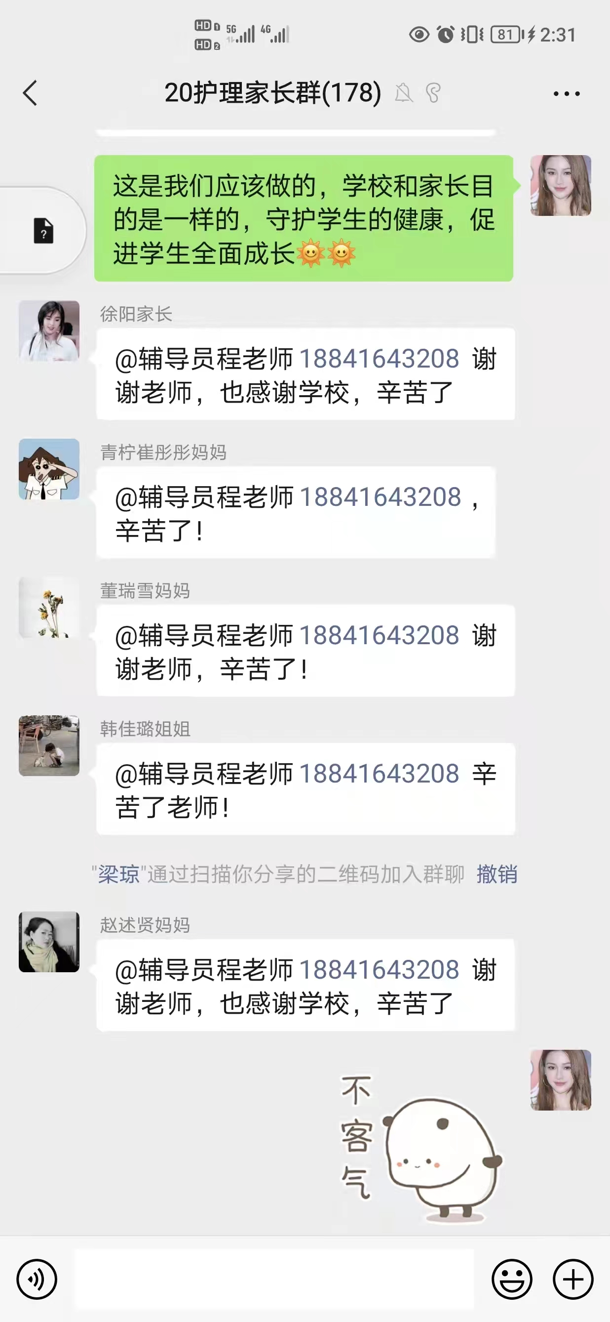 家长会结束后,家长们纷纷表达了对学校疫情防控工作的理解和支持,表达了对学院老师们所做出努力的感谢,并表示会和学校一起,引导孩子静心读书、磨练本领,保持积极乐观心态,共同抗击疫情。