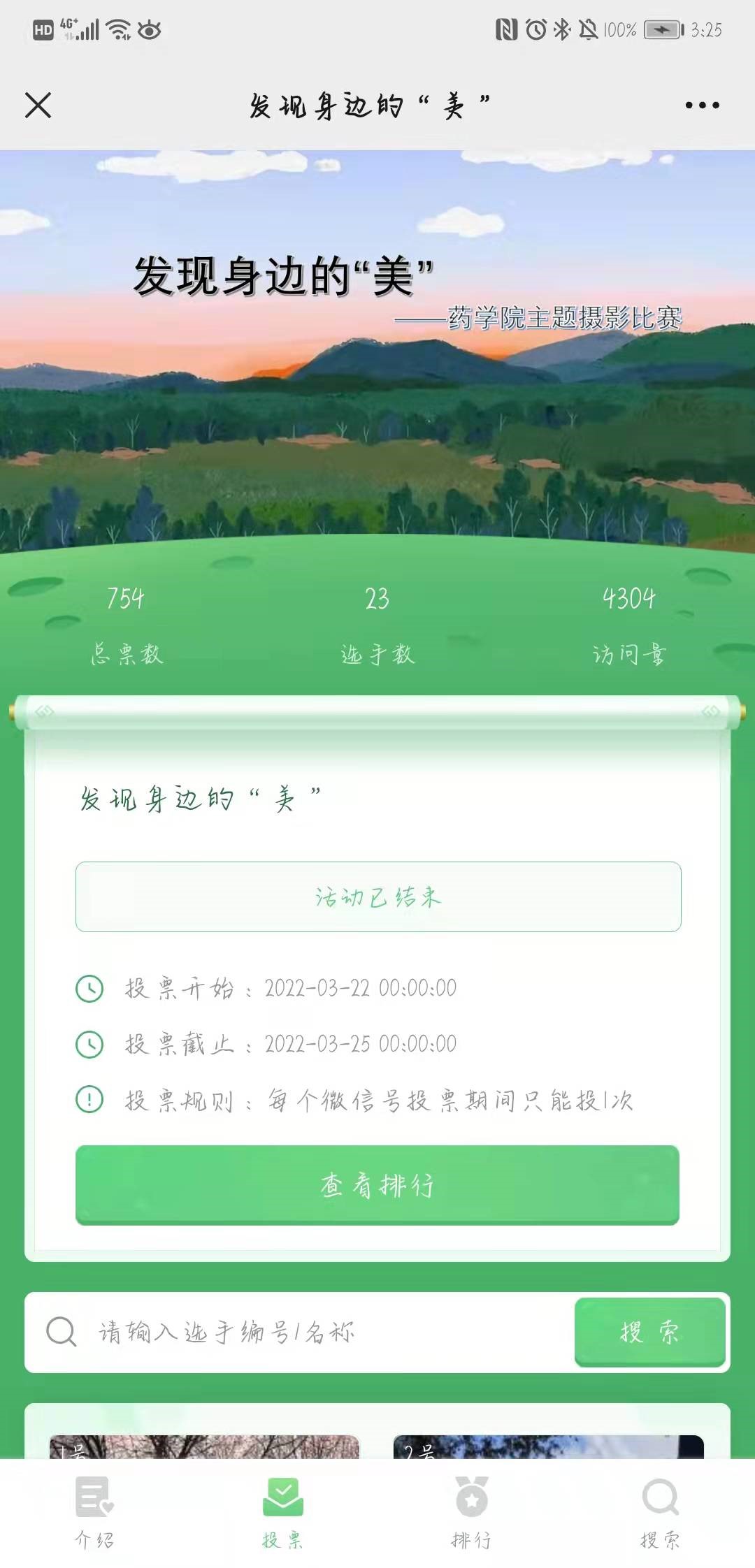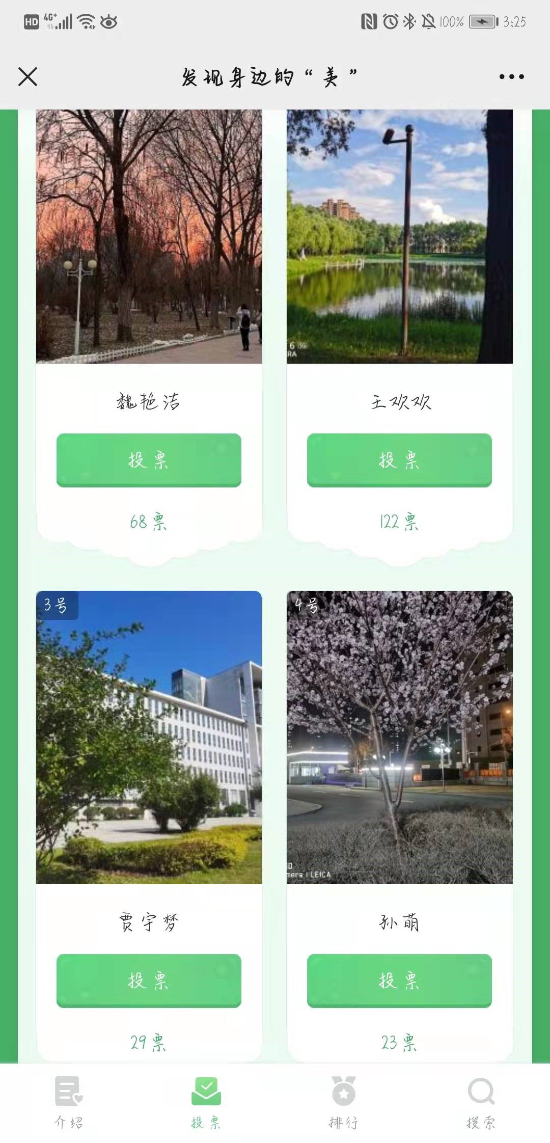 3月21日至26日,药学院举办了以“发现身边的‘美’”为主题的摄影比赛,通过网络开展了评选,同时进行了作品展示,活动取得圆满成功。