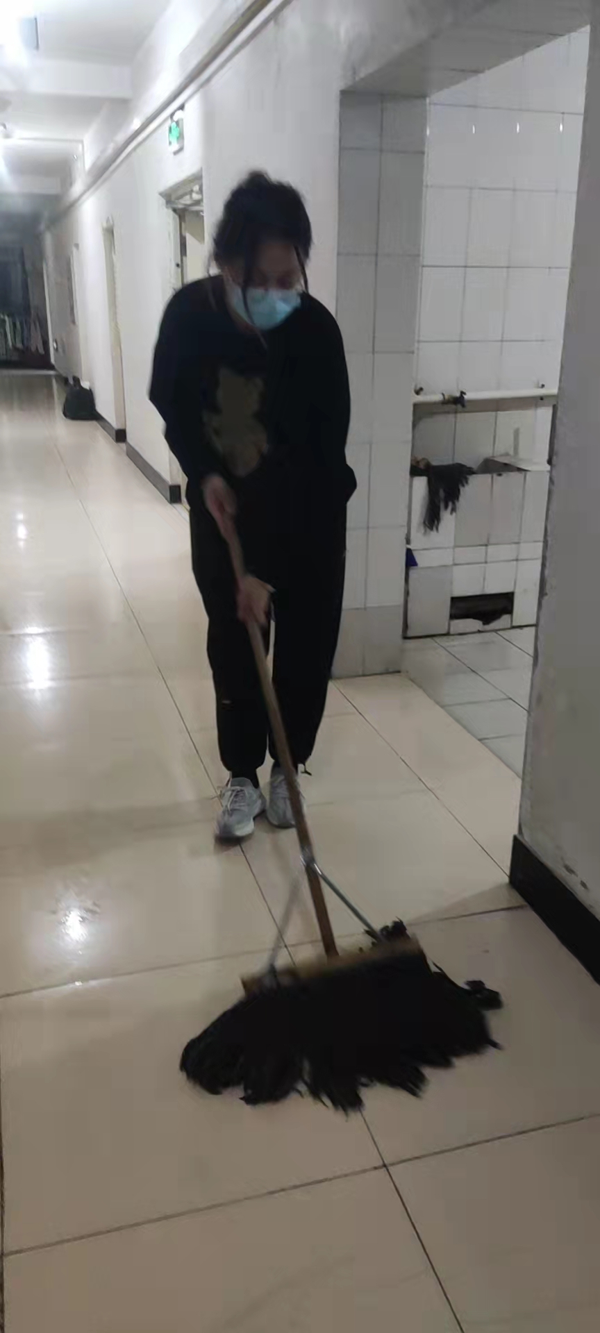 积极分子们纷纷拿起扫把、拖布等清扫工具行动起来,对宿舍楼所在的走廊、楼梯和卫生间等公共区域展开了清扫活动。大家热情高涨,以劳动为乐,在清扫过程中仔细认真、不留死角,齐心协力,共同为同学们打造干净整洁的住宿环境,充分展现了积极分子不怕脏、不怕苦、不怕累的优良品格。