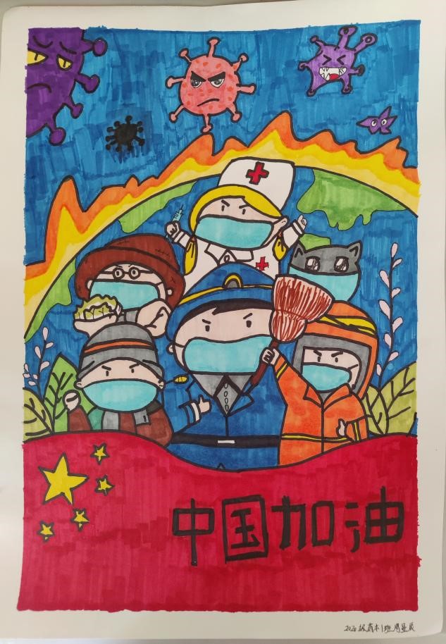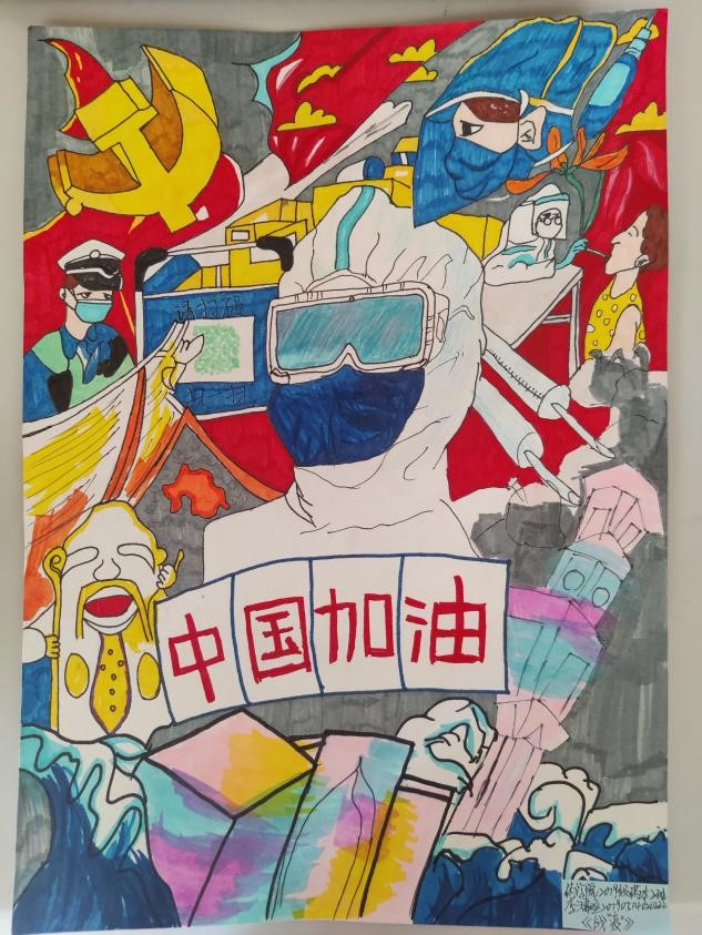 本次绘画活动旨在传递积极向上的防疫精神和情感,受到了同学们的热切关注,大家纷纷踊跃报名,活动共收到40幅投稿作品,同学们用艺术的形式记录了一幅幅反映抗疫英雄的主题绘画作品,绚丽的图案和生动的文字交织,表达了对英勇奋战在抗疫一线的工作者致敬、赞美以及对抗疫必胜的信心。