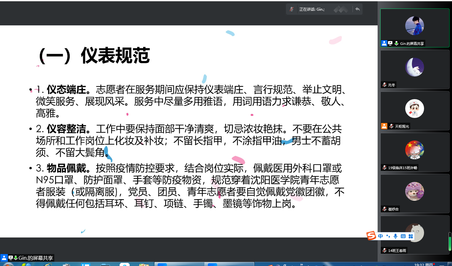 面对严峻复杂的疫情防控形势,米兰milan官方网站第一时间投身疫情阻击战中。学校的领导、老师、员工坚守校园,为在校学子保驾护航,团员青年挺身而出,参与到志愿者服务行列,争做抗疫先锋。近日,为了更好地践行志愿精神,服务学校及同学,基础医学院辅导员老师在线上召开腾讯会议,各自对自己所辖志愿者进行了集中培训。
