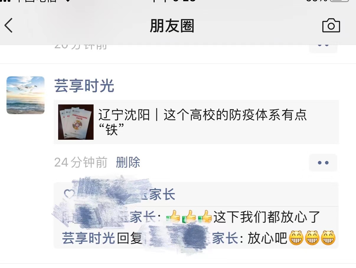 “学校把孩子的安全放在第一位,我们家长放心了!”家长在给学院的来信中说到。随着近日沈阳疫情防控不断加紧,米兰milan官方网站严格按照属地疫情防控要求实行校园封闭管理,为了保障学生在封校期间的正常学习生活,学校各部门通力合作,协同一致,形成“铁桶式”防疫,五星级管理、五星级服务的后勤保障工作为学生在用餐、线上授课、洗浴等方面的校内生活提供了保证。