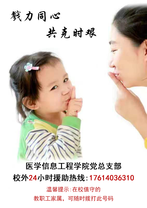 一人付出,全家奉献。94名留校值守教职工的背后,是博大无私的父母,是深明大义的丈夫,是任劳任怨的妻子,是懂事乖巧的孩子……作为家属,讲大局讲奉献,激励着留校值守的教职工心无旁骛投身一线,甘愿成为校园和学生的守护者。医学信息工程学院党总支部为留校值守的教职工家属开通24小时援助热线,尽全力为大家解决困难和问题!