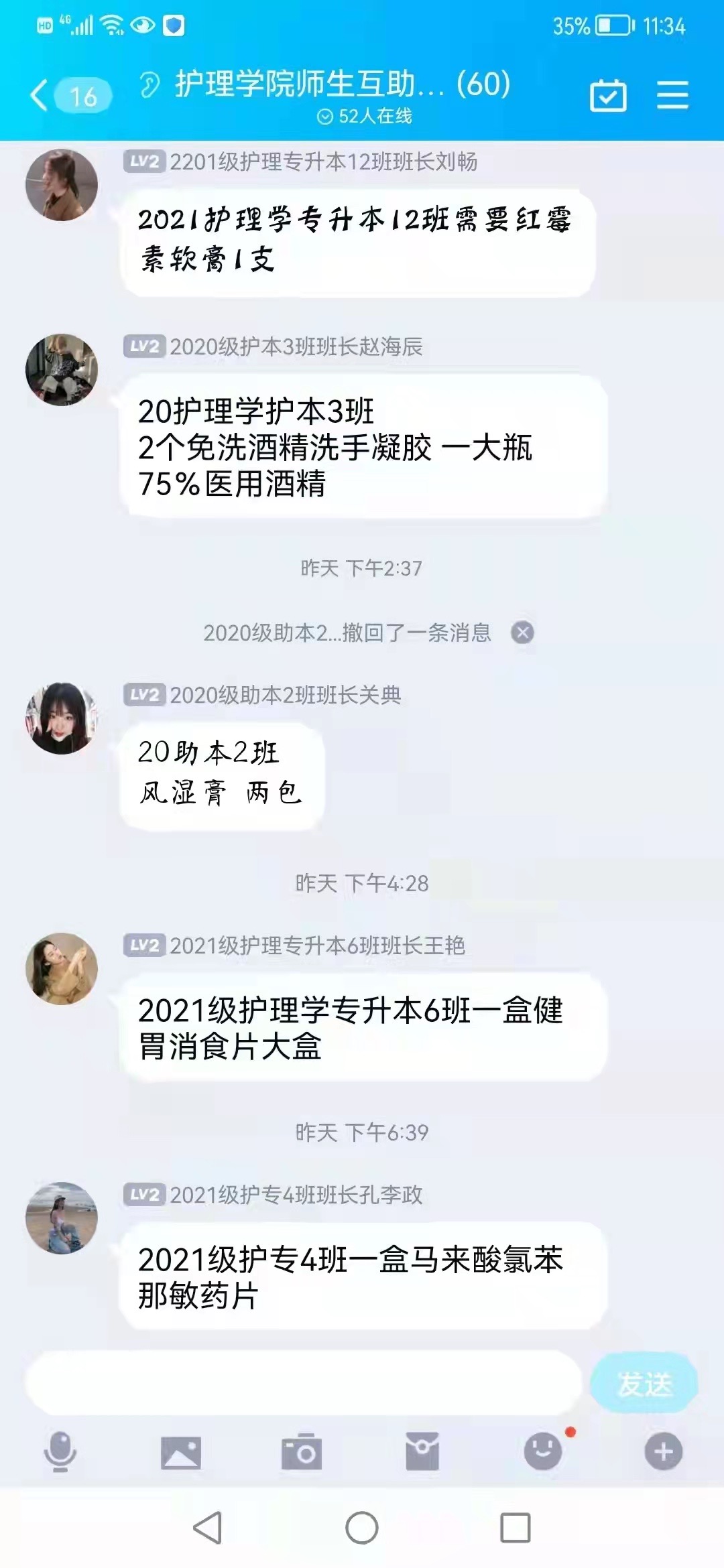 “我需要两包风湿膏,我需要一盒健胃消食片,来一瓶眼药水……”这些都是同学们在互助平台上发出的诉求。诉求发出之后,同学之间可以互相交换,如果学生之间也没有的话,学院老师会将每天学生需要的物品进行统计汇总,在校外统一购买并邮寄到学校,极大程度地方便了同学们的生活,让同学们可以安心在学校内学习和生活。