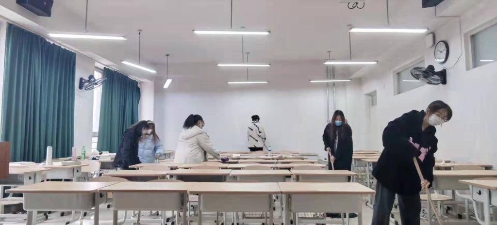 在活动过程中,志愿者们穿梭在A座2楼A213和A214等教室的各个角落,认真打扫了卫生死角,对教室进行了彻底清扫。除此之外,志愿者还仔细检查了教室设施,并进行了针对性处理,清洁工作高效有序地进行。经过几个小时的劳动,教室都被打扫得十分干净整洁,他们用自己的力量为同学们创造了一个更加舒适的学习环境。