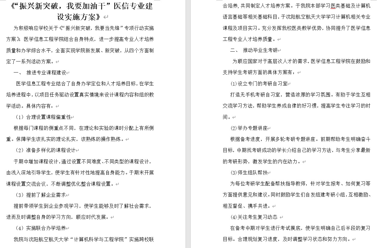 各位老师在会议上积极发言,对专业建设的努力方向展开了热烈讨论,会后根据讨论结果形成了《“振兴新突破,我要加油干”医信专业建设实施方案》。