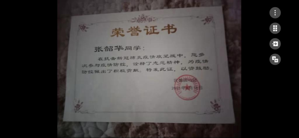家住河南省鹤壁市的21级护理学专升本8班学生隋素苗,在疫情防控初期就积极加入到志愿者队列中。在社区临时搭建的健康服务站,为小区进出人员进行测温、检查出行码和健康码,在空闲时间用喇叭录音为大家讲解宣传防控知识,对小区居民的提问等作出回答。