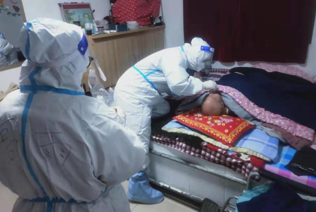 2019级助产学1班苗钰培协助医生和社区工作者开展采集核酸标本,每天早上五点半到采集点集合,六点开始。她在村口把关,对进出村民进行扫码测温,绿码和体温正常者放行,跟随医生入户,为隔离人员和行动不便的村民进行采样。