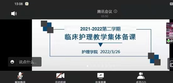 为使教学管理同质化,并针对临床专业课程教学大纲、教学方法进行充分交流、探讨及统一。护理学院于2022年2月26日举行第二次线上临床护理教学研讨会暨临床护理教学大集体备课。