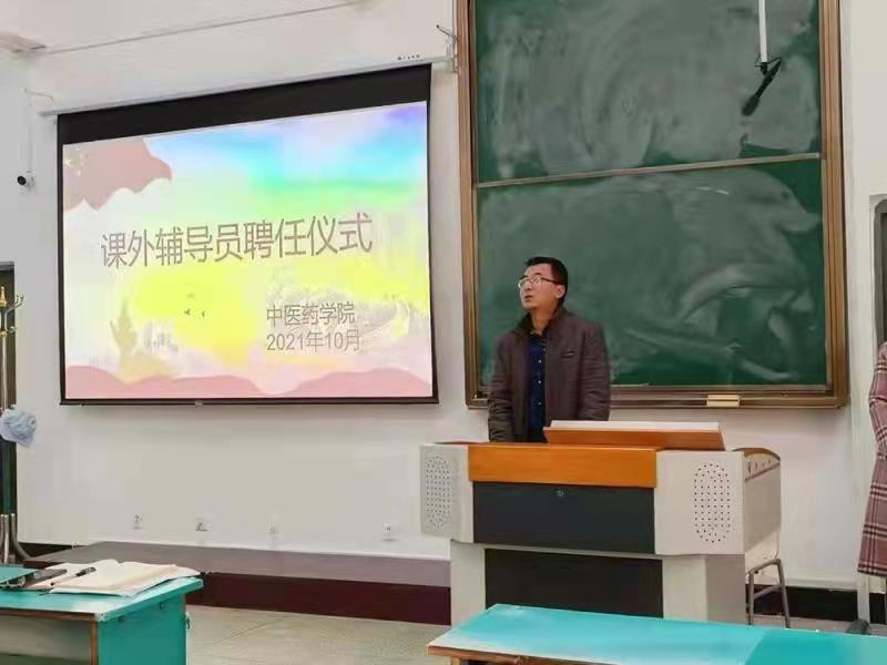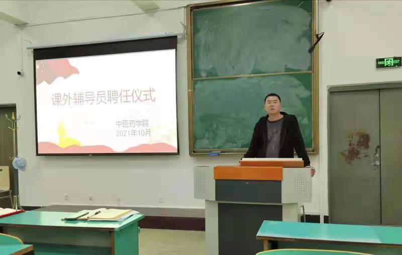为进一步加强中医药学院大学生思想政治工作,充分发挥党员干部在思政教育、人才培养等方面的积极作用,创新思政工作模式,营造“三全育人”氛围,中医药学院于10月27日下午在第一教学楼J105教室举办了课外辅导员聘任仪式。学院相关领导、党员教师及2021级全体新生参加了本次仪式。仪式由党总支书记全景梁主持。