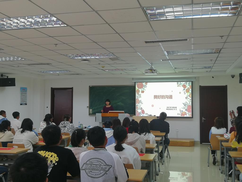 本次讲座特邀中药学教研室教师、国家二级心理咨询师于青老师主讲。活动由中医药学院院长王杰主持,党总支书记全景梁、部分教师及全体新生参加了本次活动。