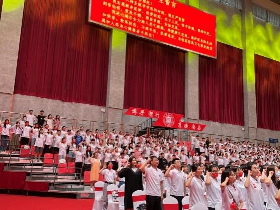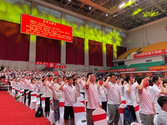 在人体解剖学教研室田伟老师的带领下,毕业生们再一次举起右拳,郑重宣誓,重温医学生誓言。
