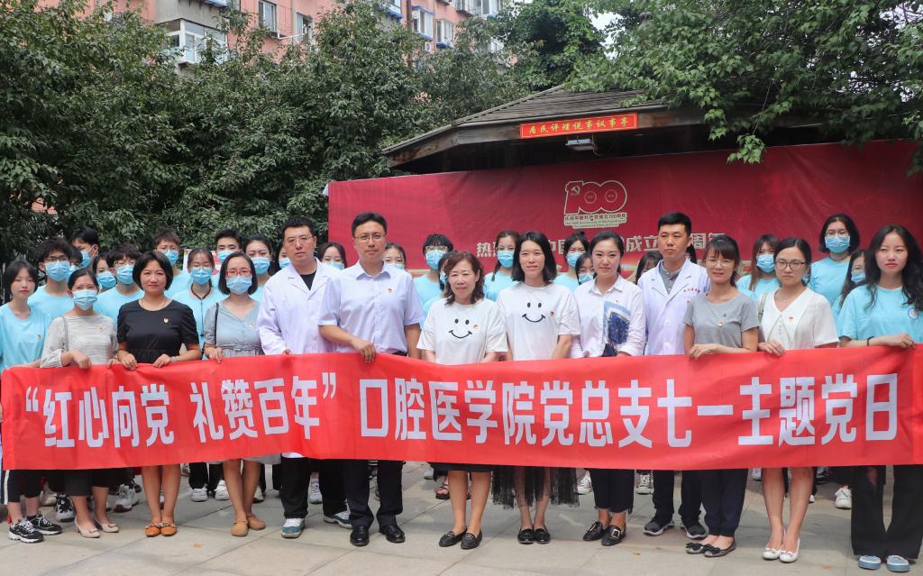 6月25日下午,口腔医学院党总支部携手共建单位沈河区风雨坛街道、雨坛社区、市曲艺家协会、社区各文化社团,邀请党员师生以及居民友邻等200余人,共同开展庆祝中国共产党成立100周年微党课、惠民口腔义诊及文艺演出活动。