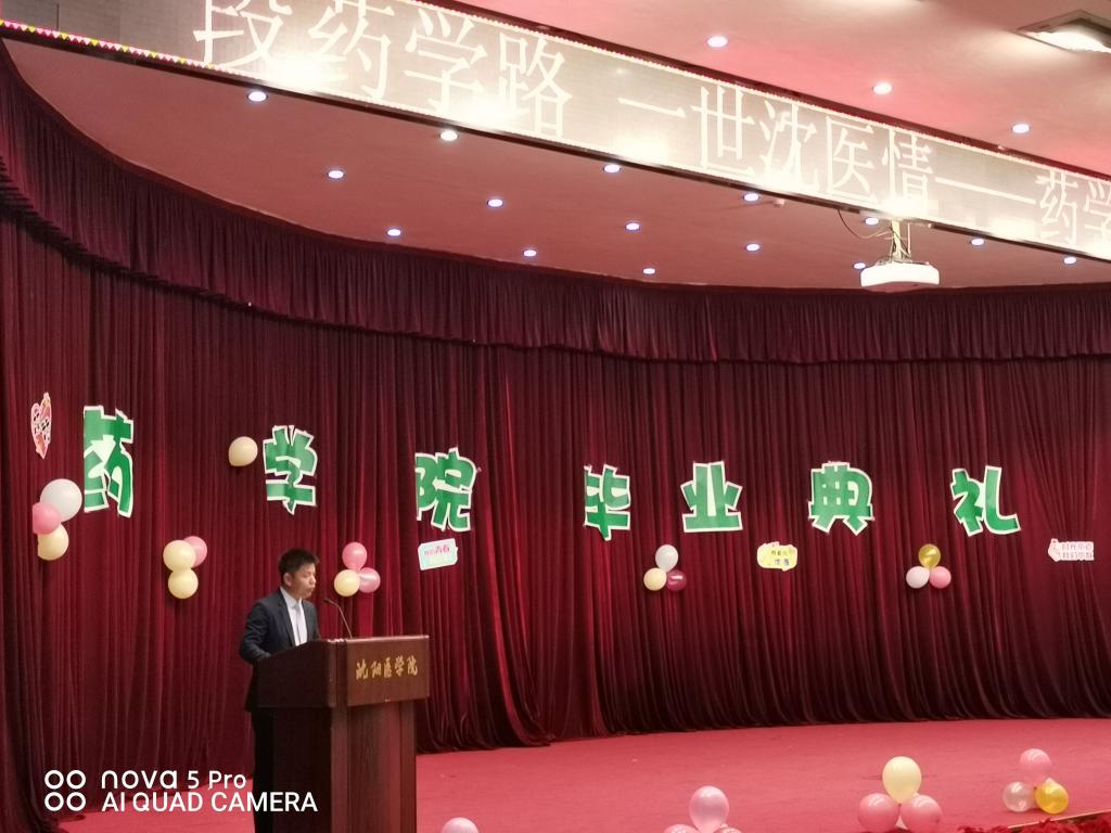 毕业典礼由药学院副院长金戈主持,毕业典礼在同学们离别的歌声中拉开帷幕,本科毕业生赵翔宇、专科毕业生褚小玉分别代表本专科毕业生发言。两位同学表达了他们对老师的感谢、对母校的留恋以及对未来的期待!
