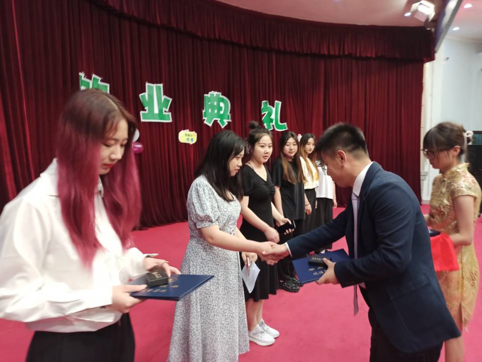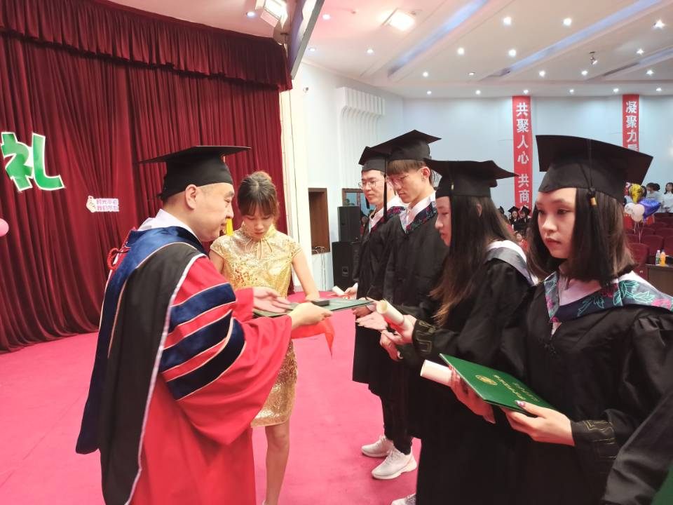 药学院副院长卢熠为全体本科毕业生颁发了学士学位证书,药学院党总支书记李刚为全体专科毕业生颁发毕业证书。