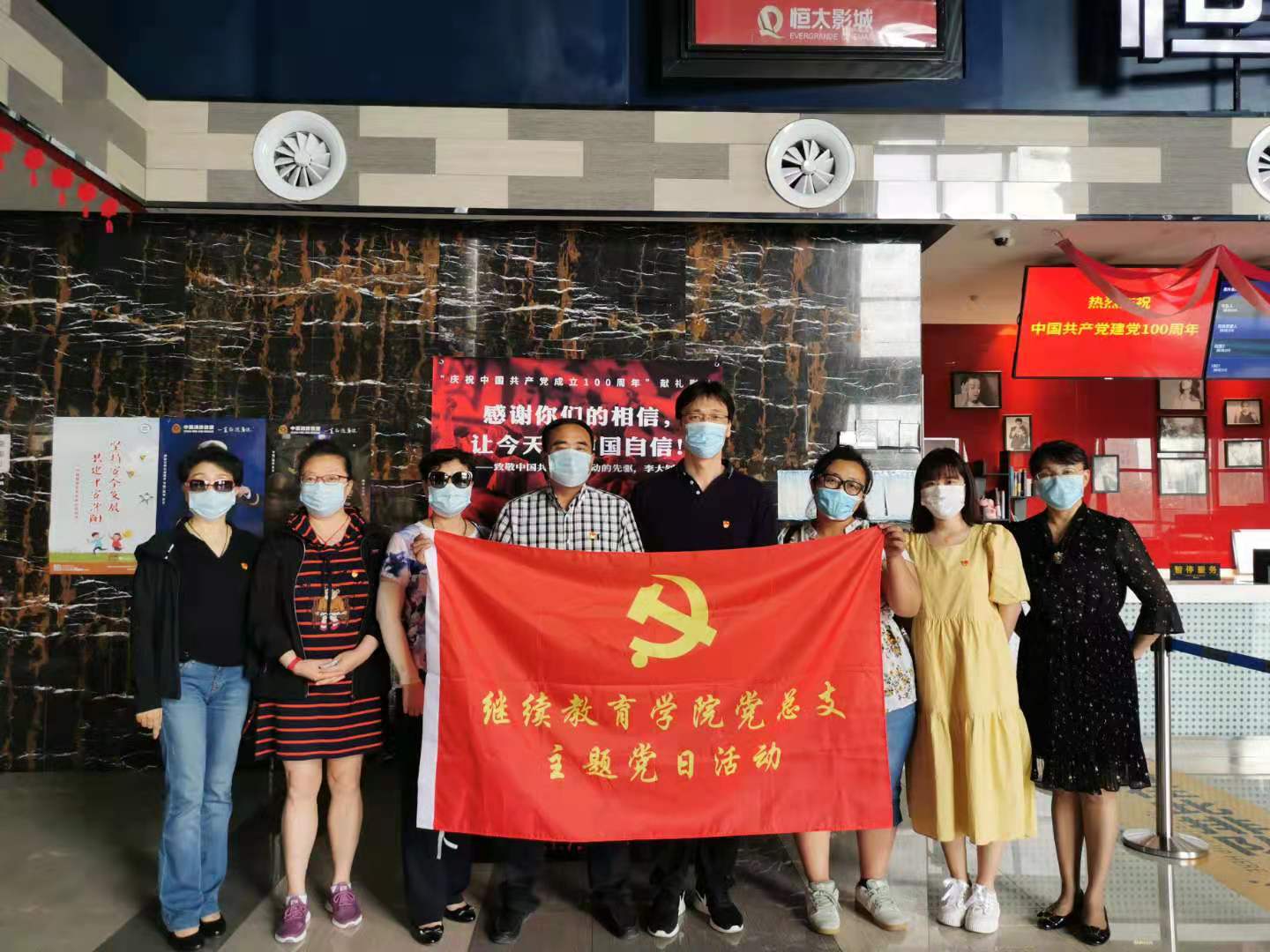继续教育学院党总支部按照党史学习教育安排,6月25日,组织党员开展“光影铸魂”电影党课教育活动,党总支部全体党员集体观看了爱国主义教育电影《1921》。