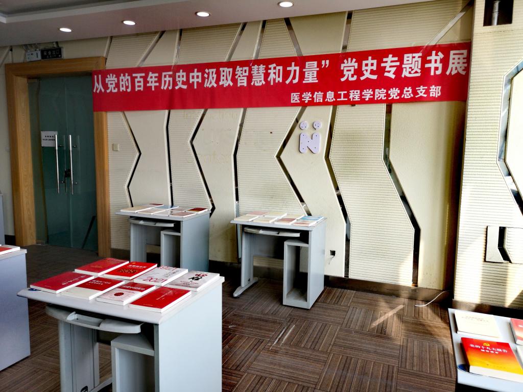 为迎接党的百年华诞,扎实有序推进党史学习教育,激发师生知党、爱党的热情,医学信息工程学院党总支于4月1日起,在B座8楼举办“从党的百年历史中汲取智慧和力量”党史专题书展,献礼建党100周年。