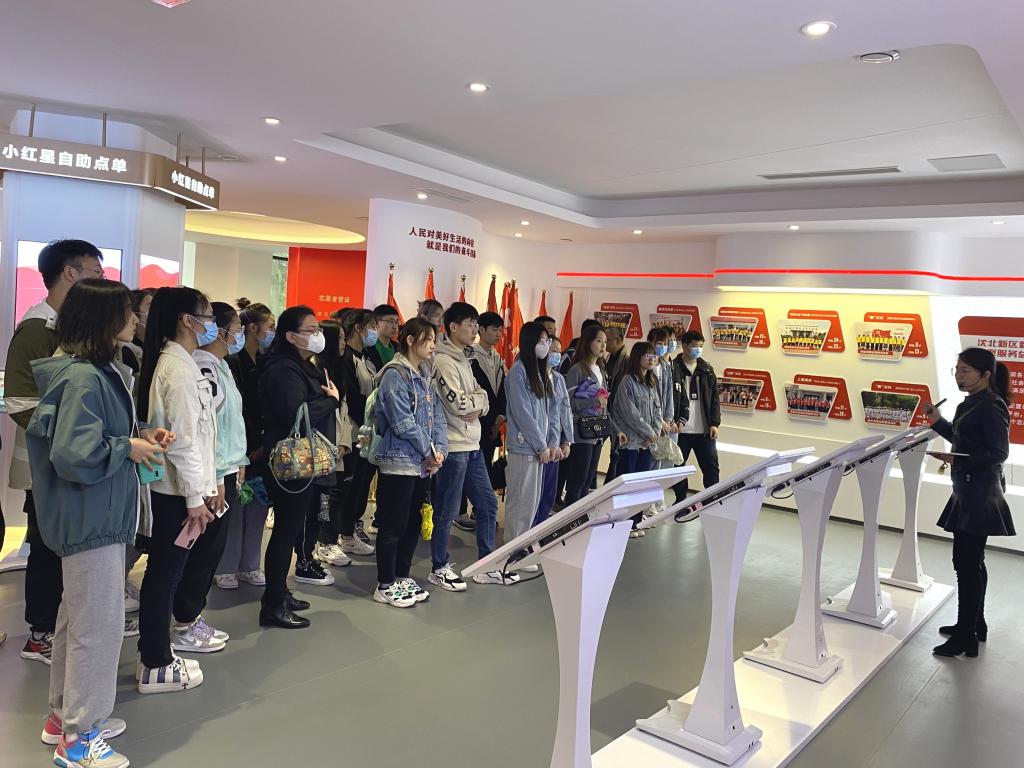 随后,全体师生参观了实践中心,该中心总面积1.2万多平方米,分为两层结构:一层设志愿者服务站、学雷锋工作室、传习中心、初心讲堂等功能区,二层设非遗文化展示、安全警示教育展厅以及群众文化活动等功能区。