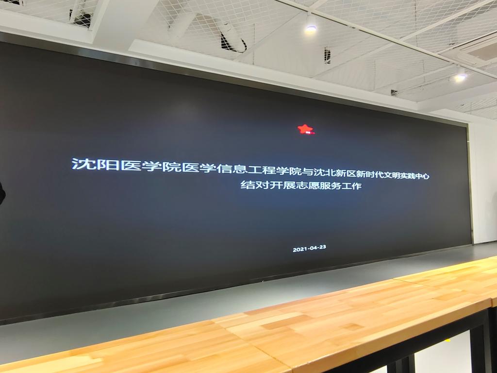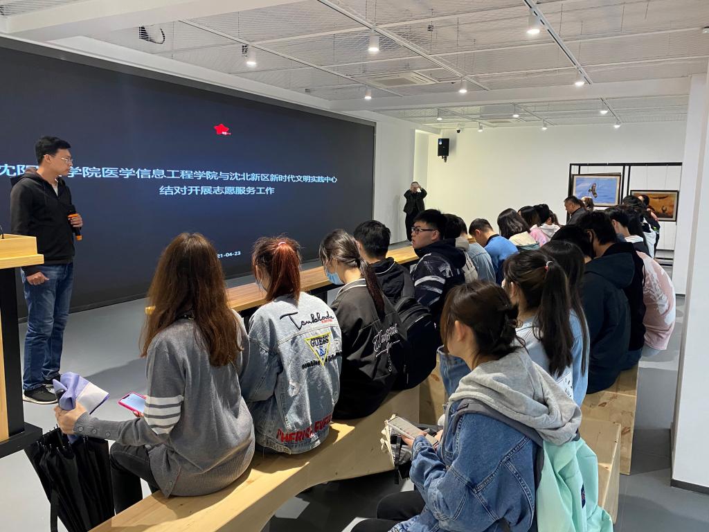 为扎实推进党史学习教育,把学习成果转化为服务社会的实际行动,4月23 日下午,医学信息工程学院师生志愿服务队一行赴沈北新区新时代文明实践中心,就双方结对开展志愿服务工作进行对接。对接会在实践中心多功能厅举行,实践中心工作人员与会。
