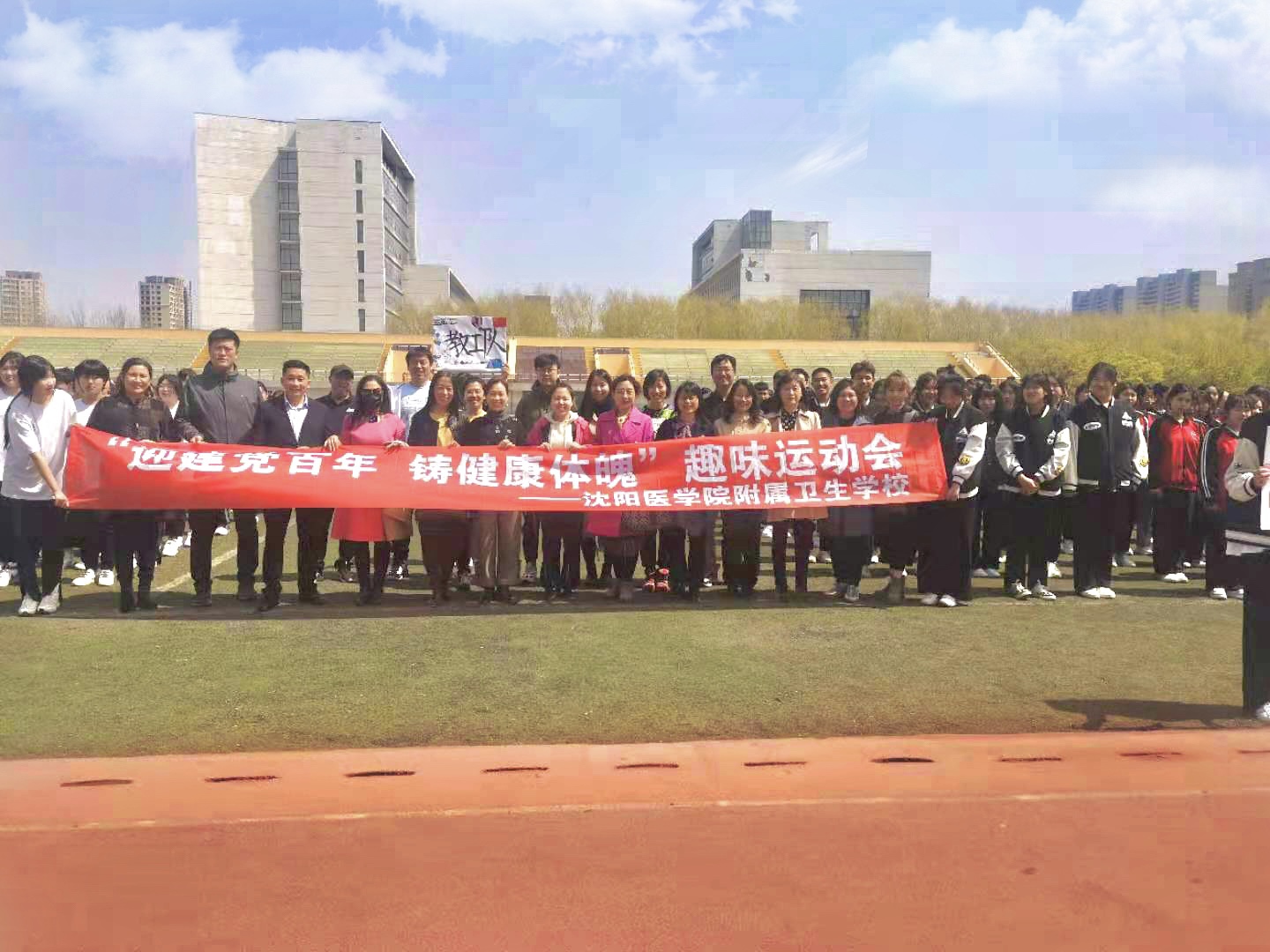 为落实立德树人根本任务,深入推进素质教育,引导学生树立正确的人生观价值观,以优异成绩献礼建党100周年,4月21日中午,米兰milan官方网站附属卫校在体育场隆重举行“庆百年荣光,谱青春芳华”首届校园文化节暨趣味运动会开幕式。附属卫校校长韦家勇、副校长石磊,全体教师和在校生参加了本次活动。