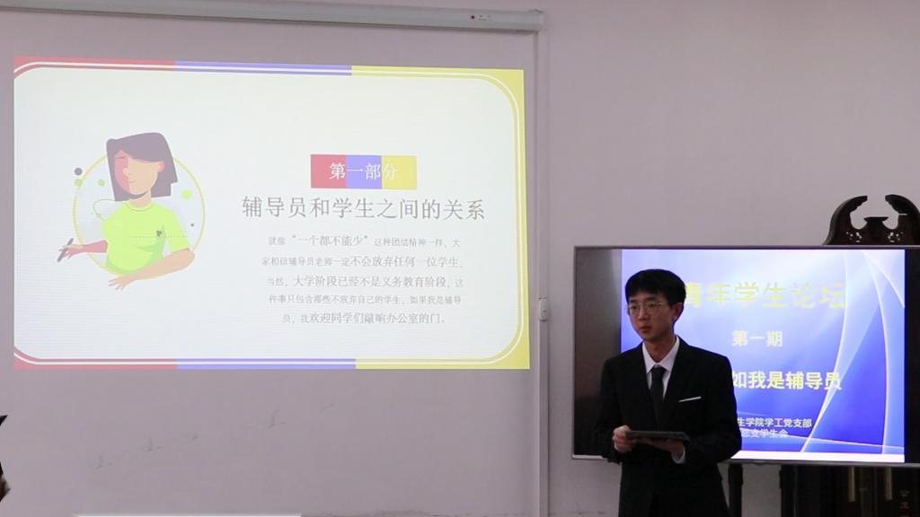 首期青年学生论坛以“假如我是辅导员”为主题,于4月23日中午在公卫楼会议室举办。学院副书记蒋大力、学生科长于晓霞,学生科何青芸老师参加了本次活动。活动由20级预防医学专业王晨莹同学主持。