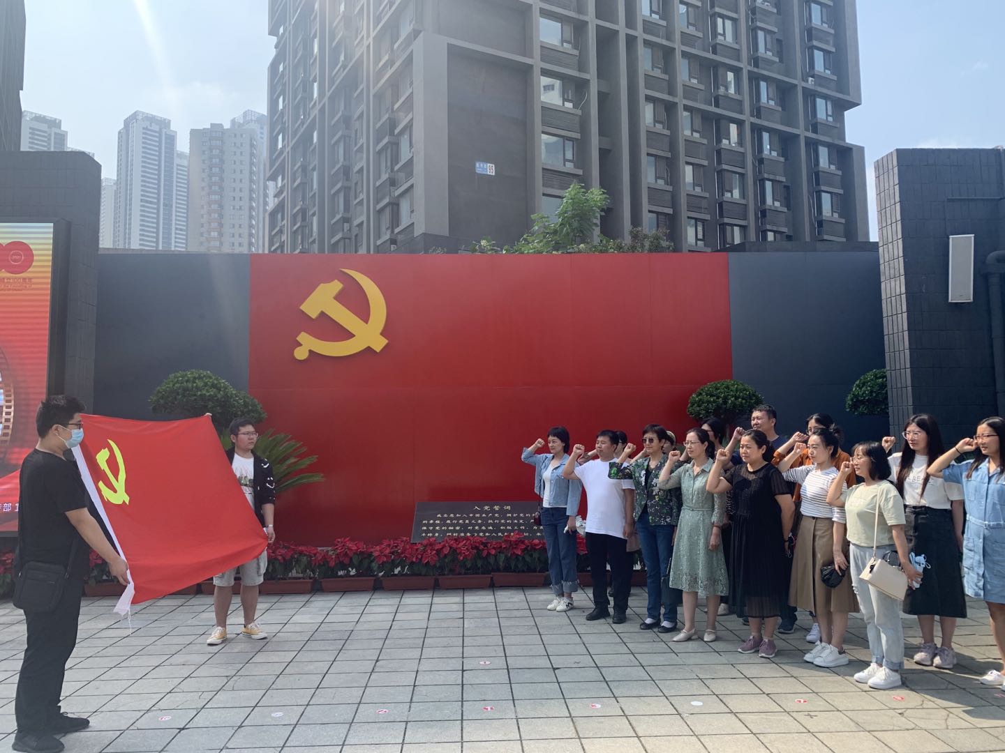 参观结束,怀揣着对革命先烈的敬意,教师党员们在鲜红的党旗下再一次庄严宣誓:“我志愿加入中国共产党,拥护党的纲领,遵守党的章程……随时准备为党和人民牺牲一切,永不叛党”。