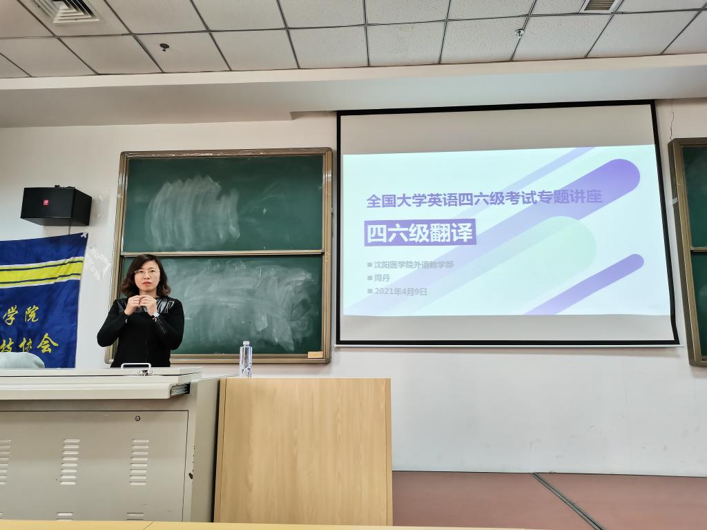 4月9日下午,外语教学部本科第四教研室周丹老师为同学们作了一场关于大学英语四六级翻译的专题讲座。周丹老师多次参加大学英语四六级考试阅卷工作,对四六级考试有深刻的理解和认识。参加讲座的同学主要为我校大一、大二同学,他们大多正在积极备战今年六月份的四六级考试,因此对这次讲座的内容十分感兴趣。