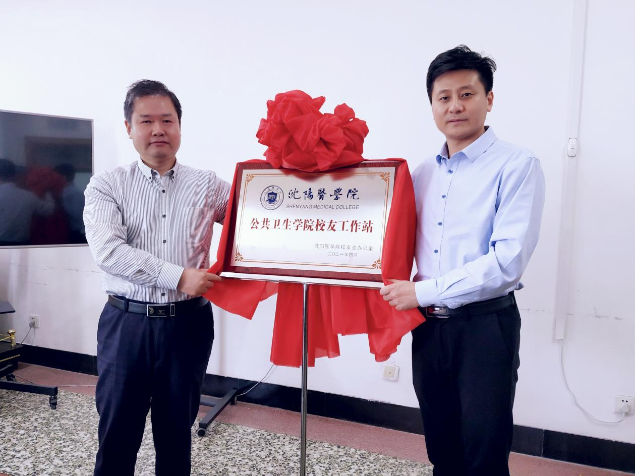 学校校友会主任刘彦明和段志文院长一起为公共卫生学院校友工作站揭牌,宣布公共卫生学院校友工作站正式成立。