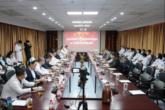 本次评审组由浙江大学医学院附属第一医院范剑主任担任评审组长,吉林大学第一医院续薇主任、北部战区总医院郑伟主任、山东中医药大学附属第一医院闫宗廷主任、哈尔滨医科大学附属第四医院邹桂玲主任共同组成评审组。在12月11日的评审首次会上,评审专家范剑主任宣读了《现场评审人员公正性、保密性及廉洁自律声明》,强调了评审的公正性和客观性,并介绍了此次现场评审的内容及要求。时任吴玉东院长代表附属中心医院对专家组的到来表示欢迎,并就医院近年来的发展情况进行了介绍,他希望专家通过评审给予附属中心医院医学检验中心更多的指导与帮助,对质量体系的持续改进提出宝贵意见。医学检验中心主任黎明新向评审组汇报了科室的基本概况和质量管理体系建设运行情况。医院领导班子成员及相关科室负责人出席评审会议。