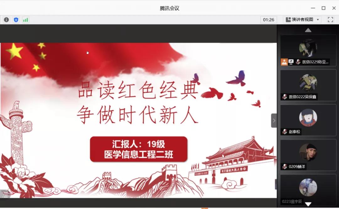 医学信息工程学院党总支统一部署,精心安排本次主题教育活动:一是思想发动,营造读书学习的良好氛围,掀起“红色文化”学习热潮。红色经典是良师、是益友。通过读书学习,同学们重温了以自强不息、艰苦奋斗为代表的井冈山精神、长征精神、延安精神;以不畏强敌,勇于斗争为核心的抗战精神;以解放思想,实事求是为集中体现的改革精神等。二是层层抓实,确保读书活动顺利开展,各班班干部带头学习,并组织线上班会进行交流讨论。三是明确内容,力求取得成效。通过读书与思考,记录与体会,反省自我,提升自我,促进了班级学风,思想政治和文化建设,以实际行动迎接建党100周年。