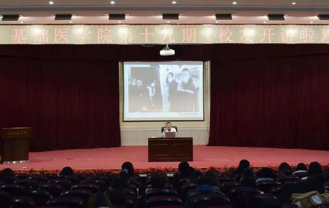 11月19日,基础医学院举办第十九期《校友开讲啦》,邀请到援鄂医生、附属中心医院感染科赵钰医生做客主讲。