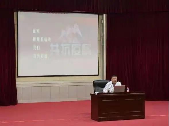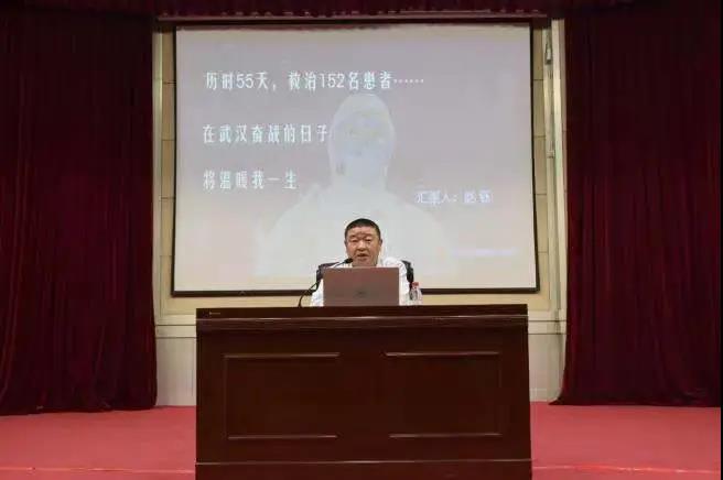 在讲座中,赵钰医生跟同学们分享了此次支援武汉疫情的经历。面对困难和病毒,赵钰医生没有退缩,他主动报名,历时55天共救助152名患者。他说:“在武汉奋战的日子,将温暖我一生。这场突如其来的疫情, 是一场艰难的战‘疫’,我们每个人都应该全力以赴,勇往直前。”