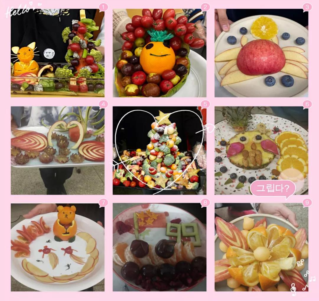 绚丽多彩的水果拼盘设计大赛提高了同学们的创新能力、审美能力、艺术素养和动手能力,丰富了同学们的大学生活,活跃了校园文化气氛。同时在小组协作中,同学们提升了团队精神和合作技巧,增强了自信、自强、自立意识。