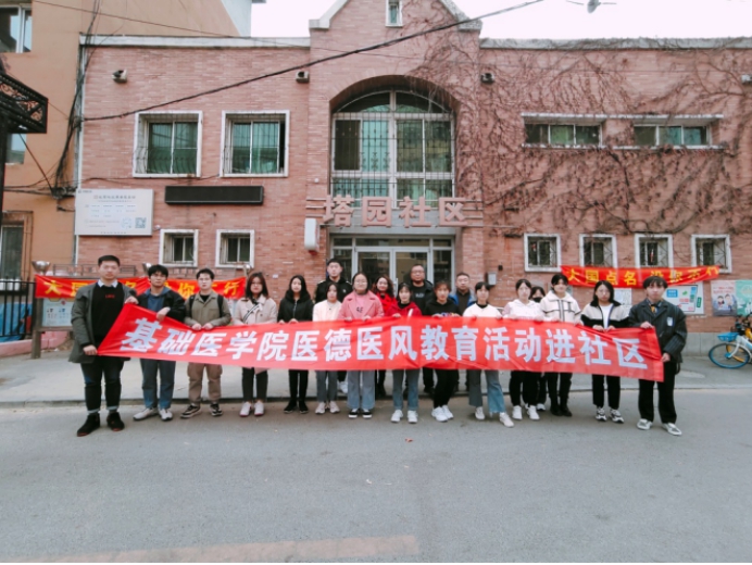 医德教育永远在路上,基础医学院医德医风教育进社区活动是立德树人工作的拓展和延伸,把社会实践当做“第二课堂”,让学生们在锻炼自身能力的同时,感受到助人为乐的快乐,体会到职业的荣誉感,从而使基础医学院医德医风教育不断巩固,发挥实效。