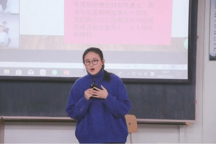 活动中,三名学生代表分别对中国发展、大学生活以及抗美援朝的历史进程进行演讲。三位演讲者各展风采,阐明了对主题的深度理解,与大家分享了许多经验与心得。