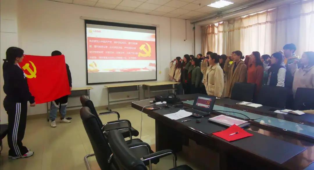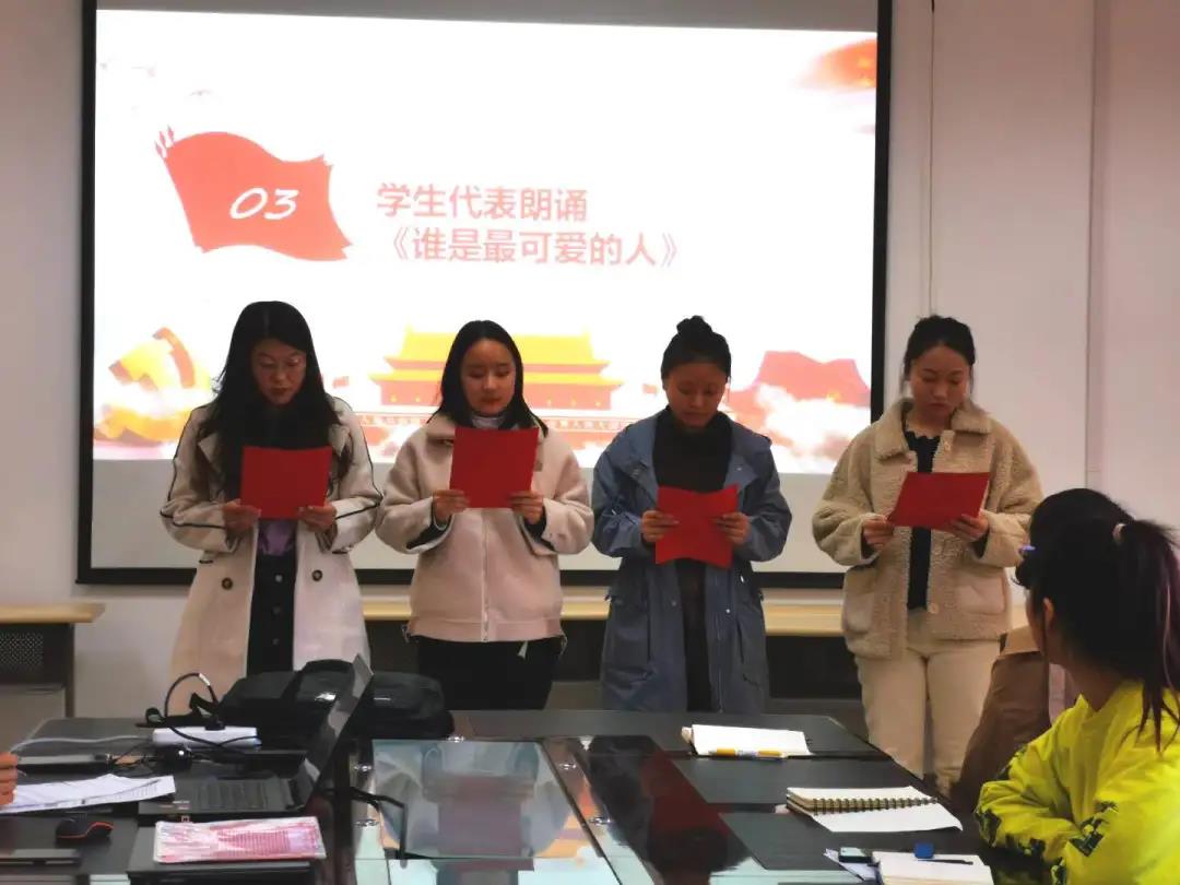 最后,由学生代表通过朗诵《谁是最可爱的人》节选,向牺牲在朝鲜战场上的英雄表达深深的敬意。全体党员面对鲜红的党旗,重温入党誓词,在思想上再一次接受“洗礼”,荡涤思想尘埃,激发政治责任感,增强为党旗增辉的荣誉感和使命感,嘹亮的宣誓声音映射出了党员们永远不变的初心!