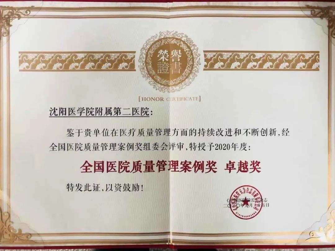 本次评选活动由《中国医院院长》杂志主办,6家医院管理研究院(所)担任顾问机构、19名专家组成评审委员会,从质量安全水平、管理创新能力、影响力和综合效益等多个维度进行综合评价,在全国医疗管理专业领域享有较高权威性。我院历经资料申报、初审、复审等多轮评比环节,从全国163家医院选送的400余个案例中脱颖而出,成为46家提名医院之一,并最终荣获“全国医院质量管理案例卓越奖”。获得这一殊荣,是业界对医院质量管理持续改进和医院综合实力发展的充分肯定。