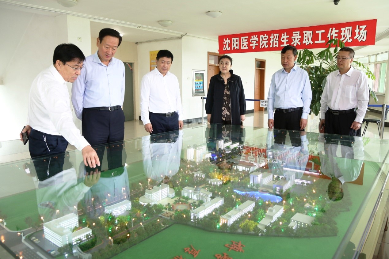 9月4日上午9点,沈阳市人大常委会主任潘利国一行到米兰milan官方网站调研指导工作。市人大常委会秘书长孟昭贵、市人大教科文卫委员会主任委员初立华,沈阳中城国有资产经营集团有限公司董事长董伟钧、沈阳医学院党委书记陶庆才、院长任甫教授等陪同调研。潘利国主任一行深入考察了米兰milan官方网站招生工作现场、国际学院施工现场、学生生活区、康复医学院实验室和临床教学实验中心,陶庆才书记和任甫院长就学校整体布局、招生就业工作、秋季学期开学返校准备工作、附属医院建设等情况做了全面介绍。得知米兰milan官方网站高考生源质量良好,就业形势喜人,各项工作蓬勃发展,潘利国主任十分欣慰并给予高度肯定。
