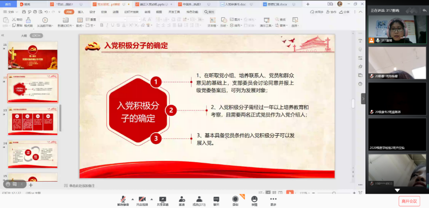 为提高2020级新生对于中国共产党的认识,医学应用技术学院学工党支部于10月16日在腾讯会议召开线上初级党课会议。本次会议由学工党支部书记程欣慧老师主持,医学应用技术学院20级全体新生参加此次初级党校班。