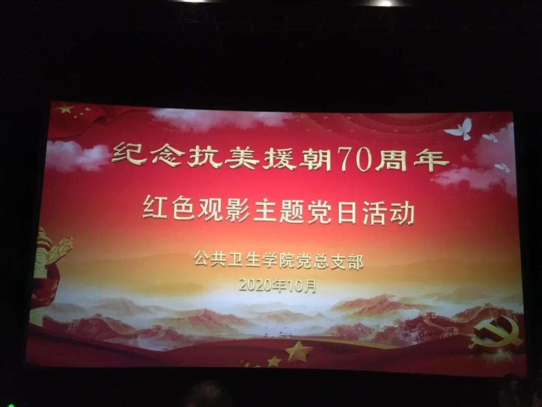 今年是中国人民志愿军抗美援朝出国作战70周年,为了纪念这段历史,缅怀先烈,公共卫生学院党总支联合学院工会组织全院教师、学生党员观看纪念抗美援朝胜利70周年影片《金刚川》。