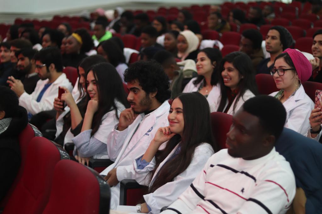 2017级优秀学生代表发言,向新同学分享学习生活经验。2019级全体新生宣读了医学生誓词。