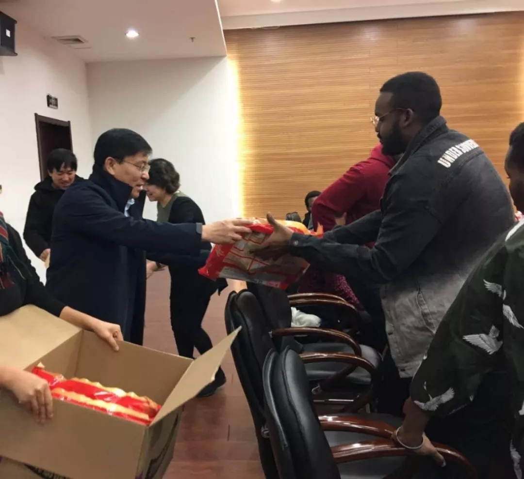 随后,陶书记、王书记及朱院长亲手为留学生们发放了春节慰问礼品,希望他们度过一个平安、祥和、有意义的中国年,同时,认真学习中国传统文化,做中外友好的使者和桥梁。