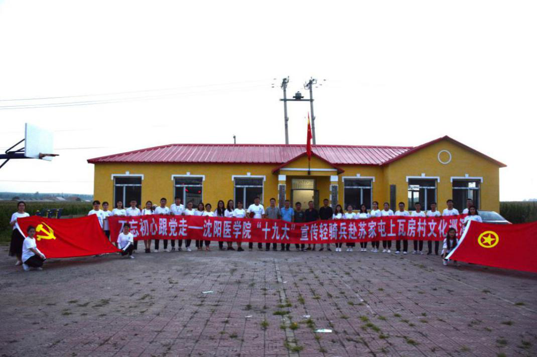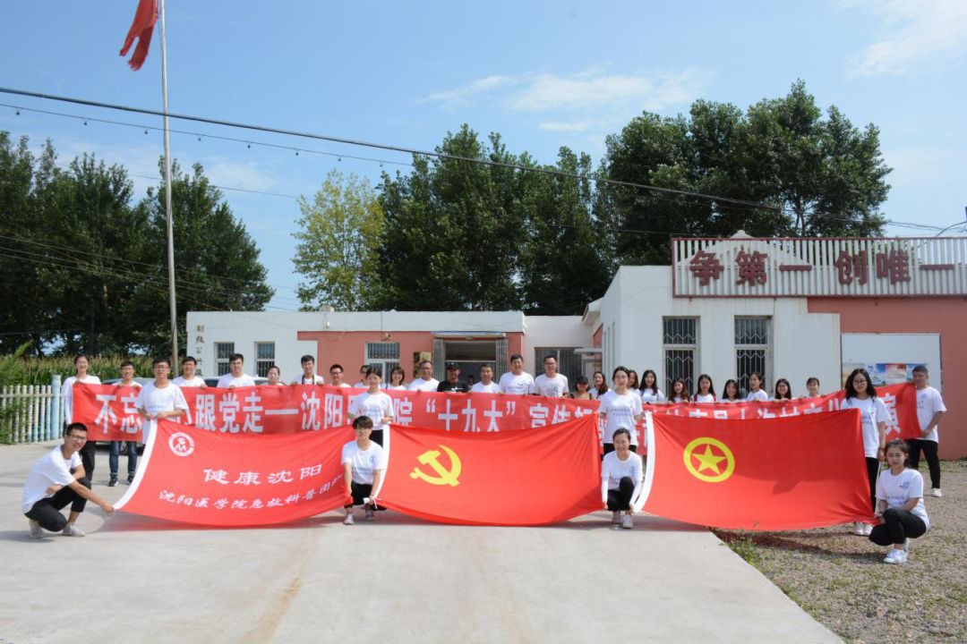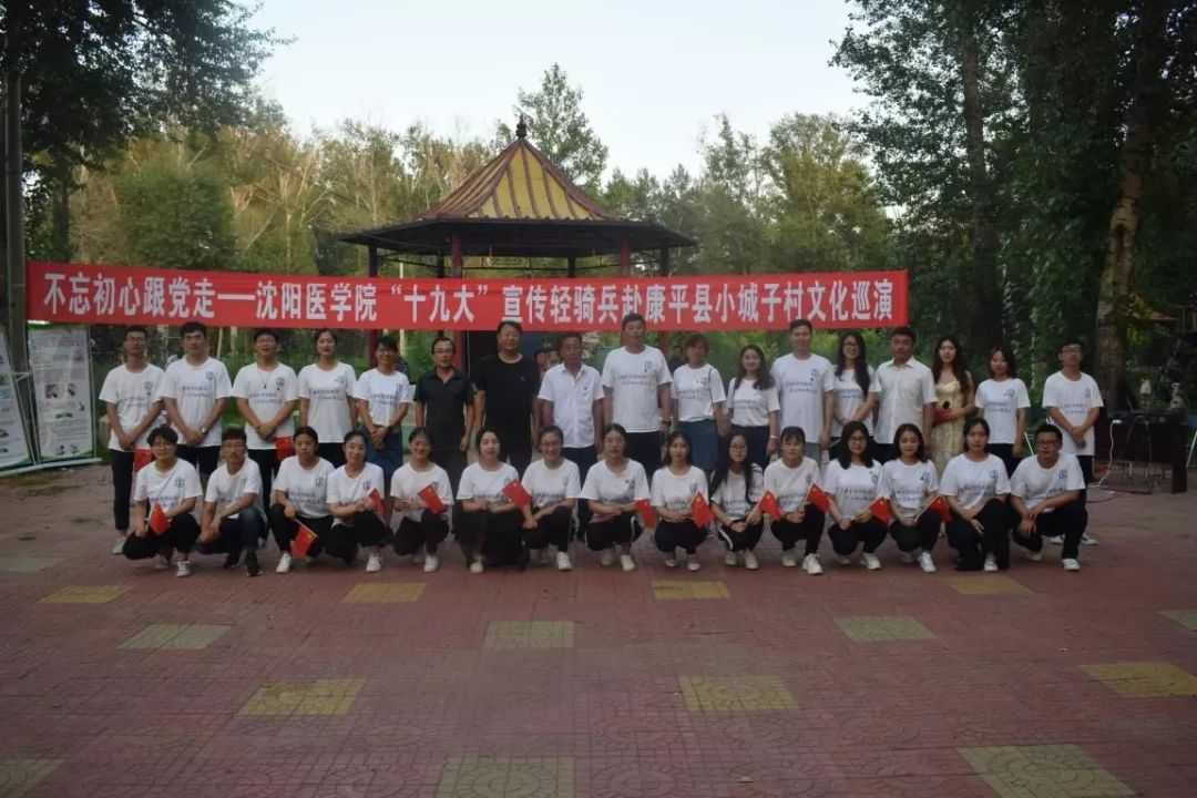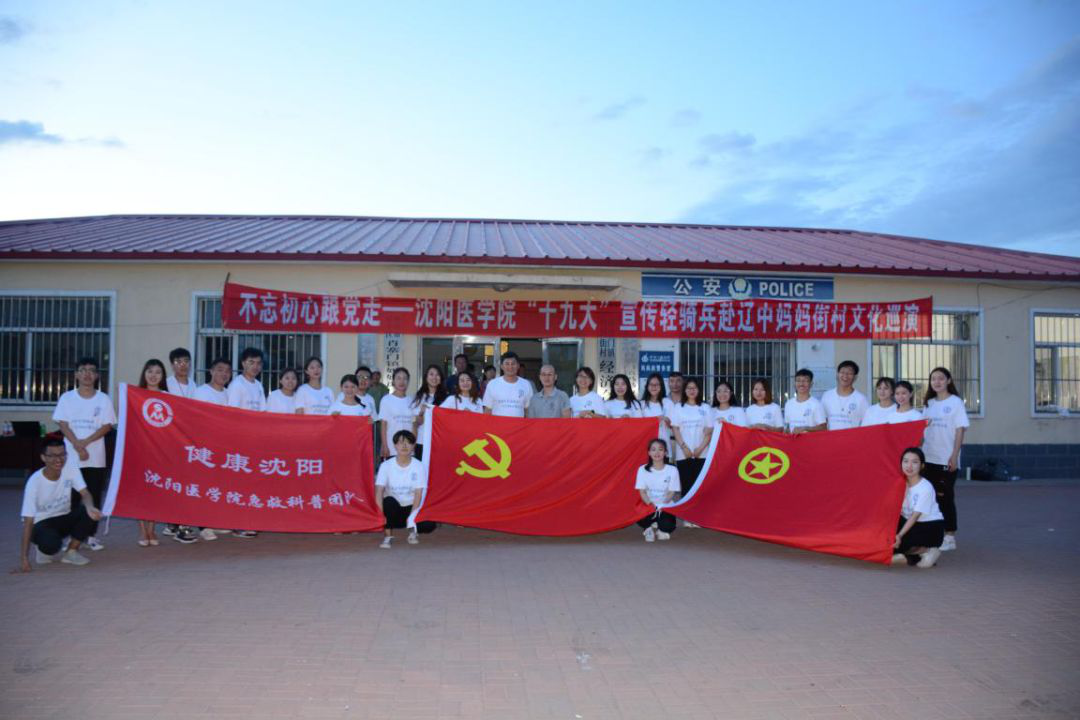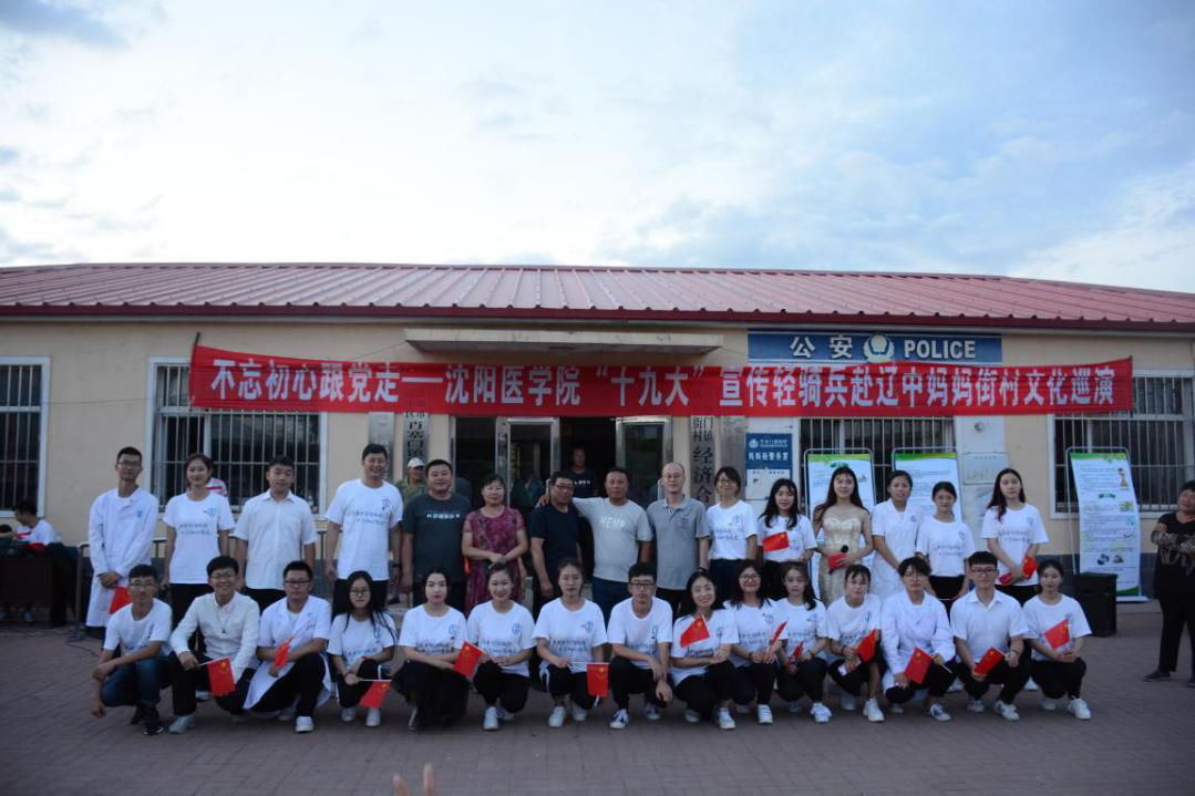 为深入学习宣传习近平新时代中国特色社会主义思想和党的十九大精神,贯彻落实《“健康沈阳”——米兰milan官方网站行动计划》,积极引导大学生利用专业所学,在社会实践中受教育、长才干、做贡献,7月23日,基础医学院按照学校部署,开展“美丽乡村踏歌行,不忘初心跟党走”十九大宣传轻骑兵巡回宣讲暨2018年暑期“三下乡”社会实践活动。基础医学院共组织40余名师生组成传播新思想,唱响新时代“轻骑兵团”,历时五天,到苏家屯区姚千街道上瓦房村,辽中区肖寨门镇妈妈街村,法库县柏家沟镇小沟村,康平县郝官屯镇新安堡村、小城子镇小城子村共五地进行巡回宣讲,活动得到米兰milan官方网站派驻村第一支书田海军、郑玉鹏、全景梁、王丰、陈岩等同志的大力支持。
